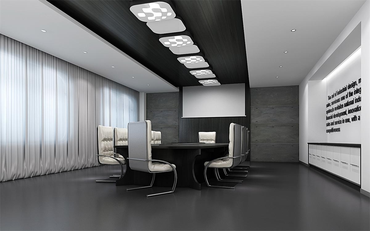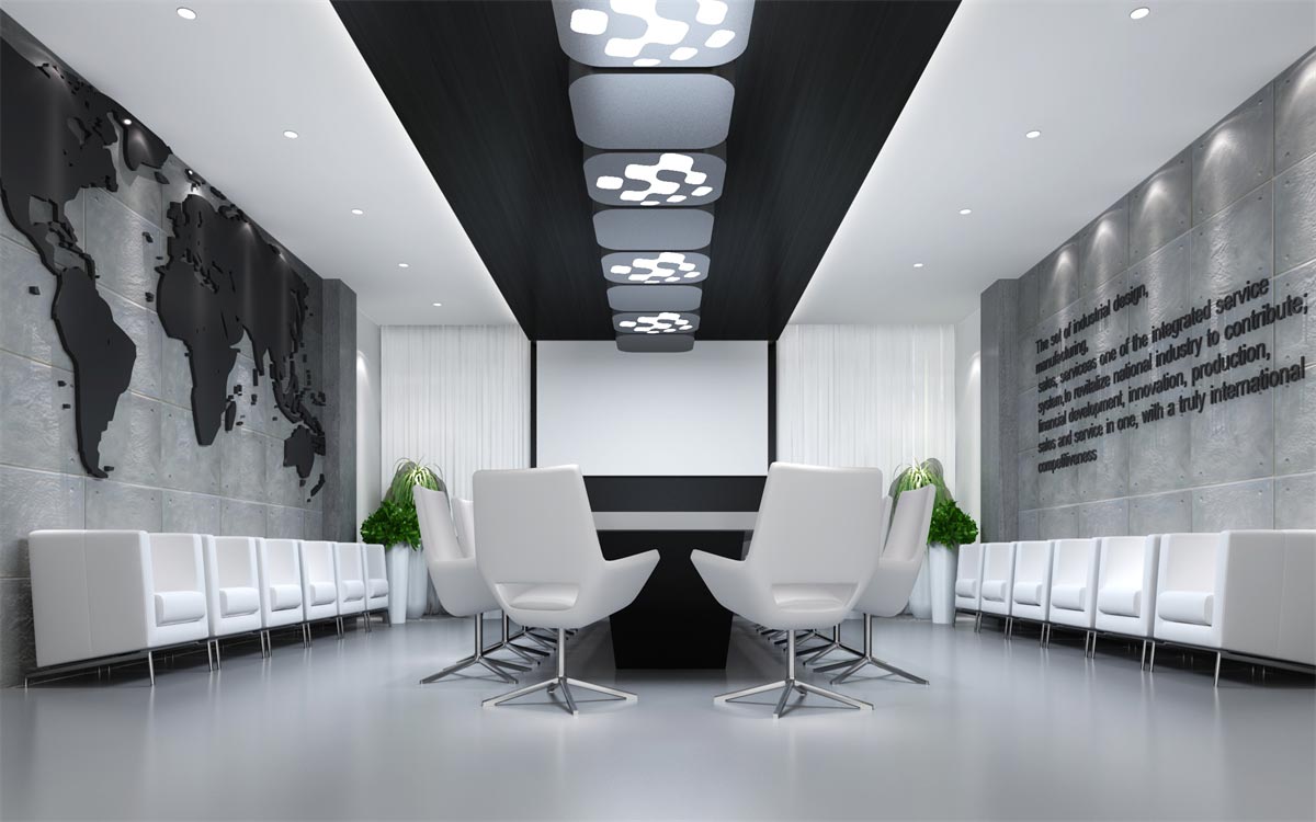 這類科技感辦公室裝修需要通過冷灰的色調(diào)才能彰顯其高端大氣的科技感,因此,選用最為經(jīng)典的黑白灰色調(diào)進(jìn)行搭配設(shè)計(jì),簡約的幾何式線條,黑白色的交替搭配(黑色墻面與白色天花,或白色墻面黑色家具),整塊的落地窗給足自然光的照射,搭配燈光的光、影映襯,與現(xiàn)代簡約的冷色調(diào)家具搭配,讓整個辦公環(huán)境科技感十足。