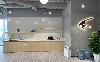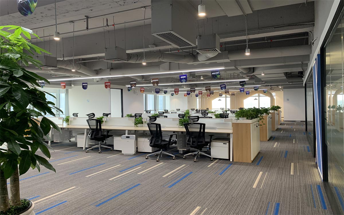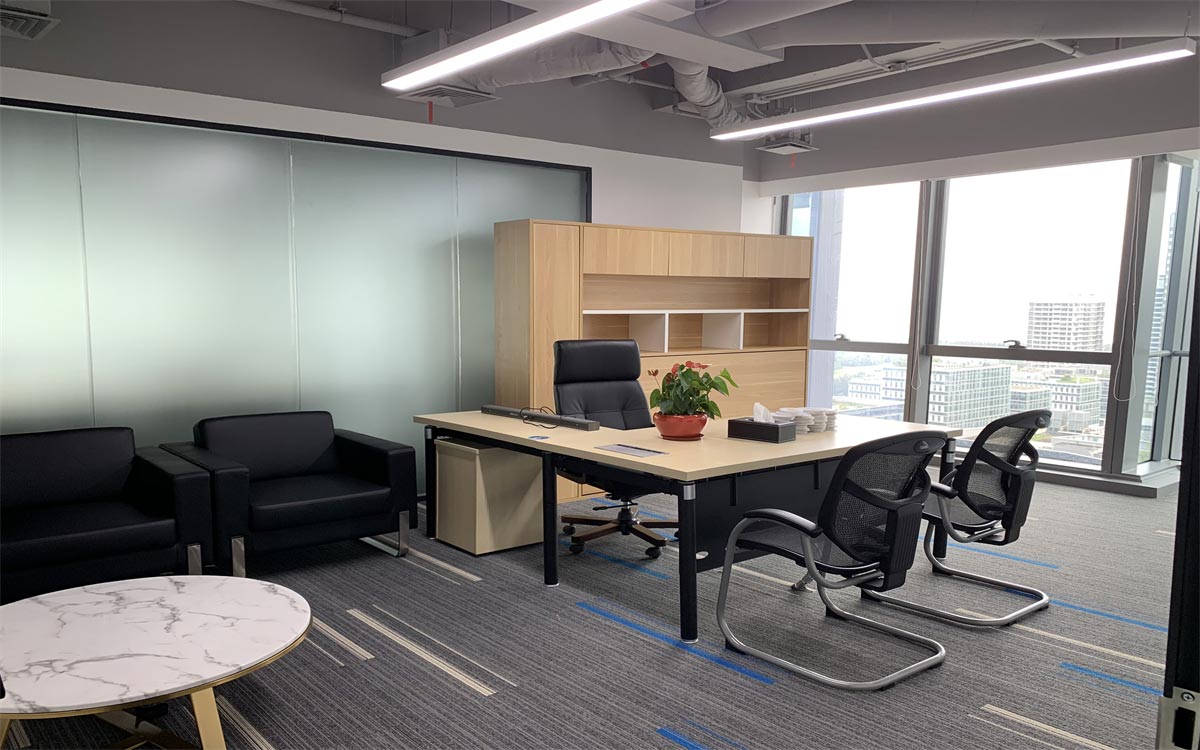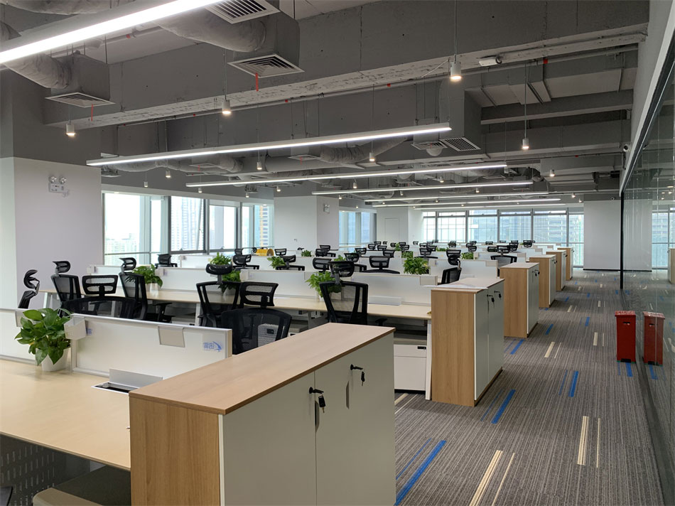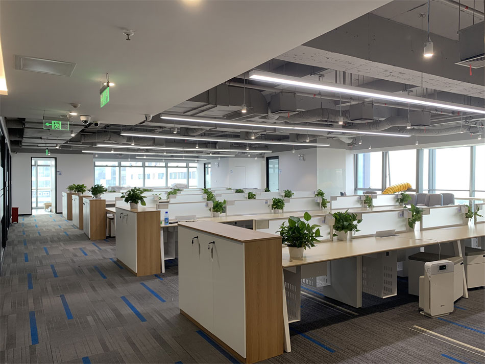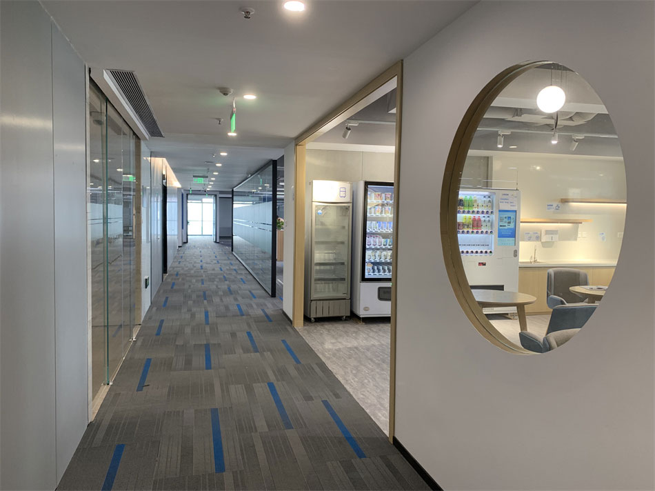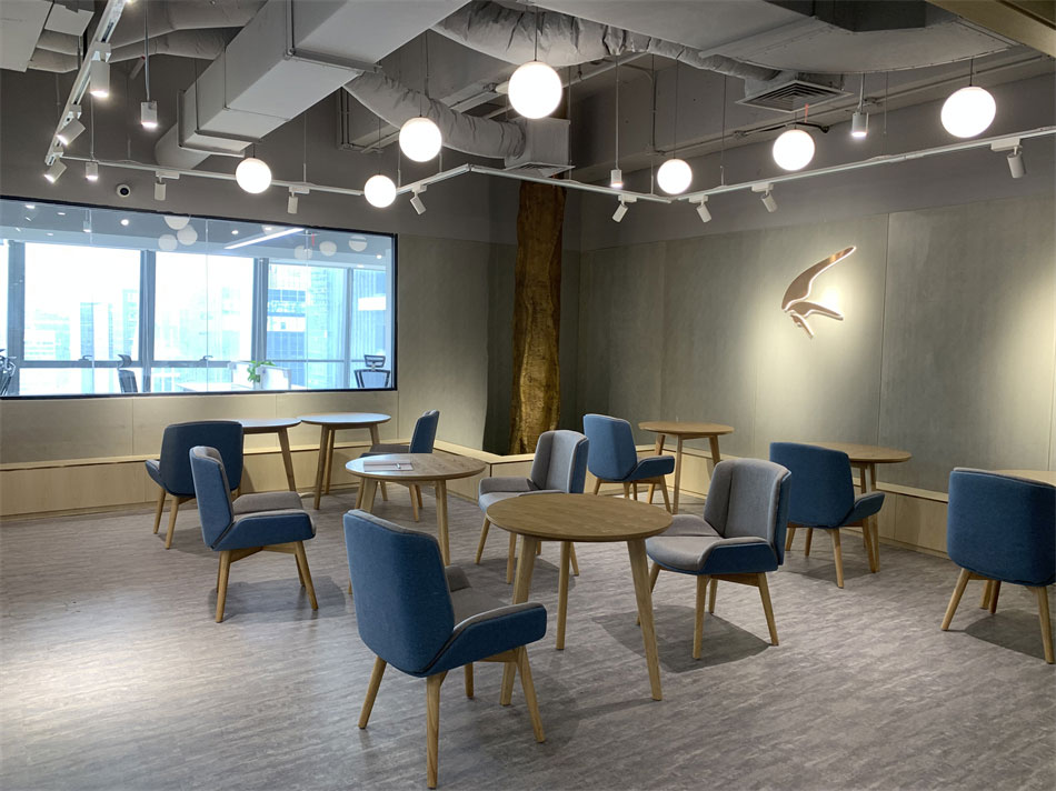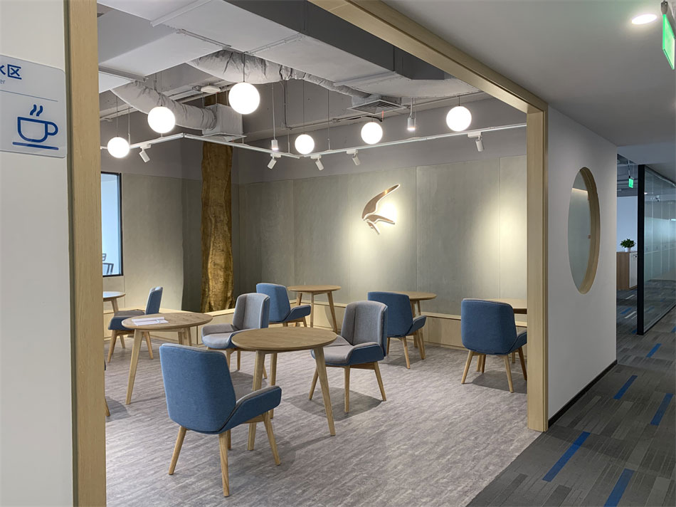 公共辦公區(qū)域采用木紋家具,左右未采用隔離擋板,通過綠植盆栽間隔辦公區(qū)域,在保證員工溝通流暢性的同時,又能有效緩解視覺疲勞。在辦公區(qū)域兩側(cè)還增加了臨時休息區(qū),開放式的圍桌座椅可容納多人。一側(cè)的落地窗可一覽無余的欣賞窗外景觀,為員工提供了一個思想碰撞,方案交流,以及辦公休閑的絕佳場所。