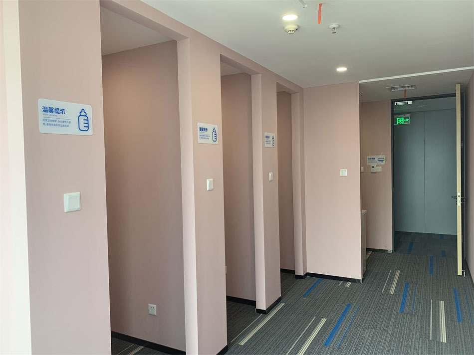 休閑就餐區(qū)采用氛圍大燈烘托,中間是一顆頂梁大樹,桌椅環(huán)樹擺放,開放式的大門,墻面的圓孔造型,以及一側(cè)的通透窗戶,給這個休閑的就餐區(qū)帶來巨大的通透呼吸感,讓就餐環(huán)境變得溫馨舒暢,還有為哺乳期的媽媽貼心的準備了“育嬰室”。